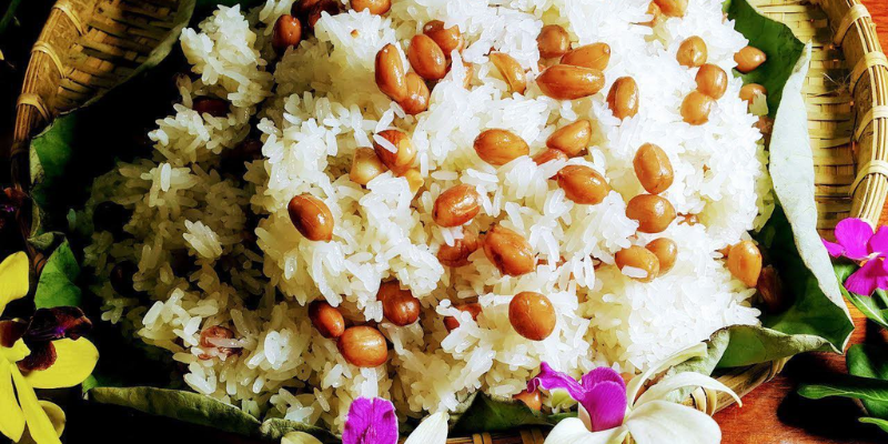 - Xôi đậu phộng nước cốt dừa: thêm nước cốt dừa béo ngậy, ăn kèm mè rang, rất hợp cho bữa sáng.