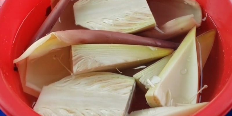 - Ngâm phèn chua: Pha loãng phèn chua trong nước, ngâm hoa chuối khoảng 10 phút. Cách này giúp hoa chuối trắng sáng, không thâm.